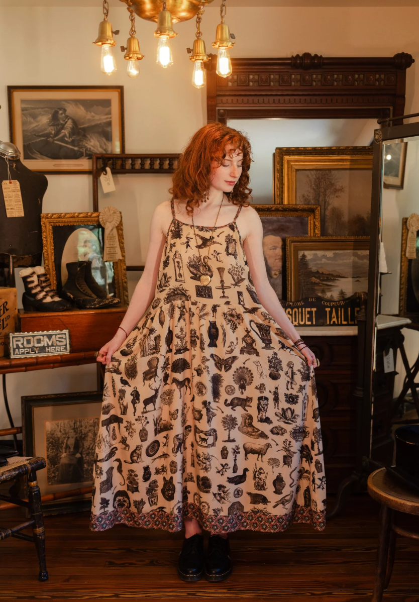 This whimsical print draws inspiration from a mysterious 1870s Parisian scrapbook, where delicate botanical sketches, graceful vases, celestial wonders, and charming creatures—including one hilariously indignant cat—were lovingly collaged together. Each element tells a story of curiosity and wonder!