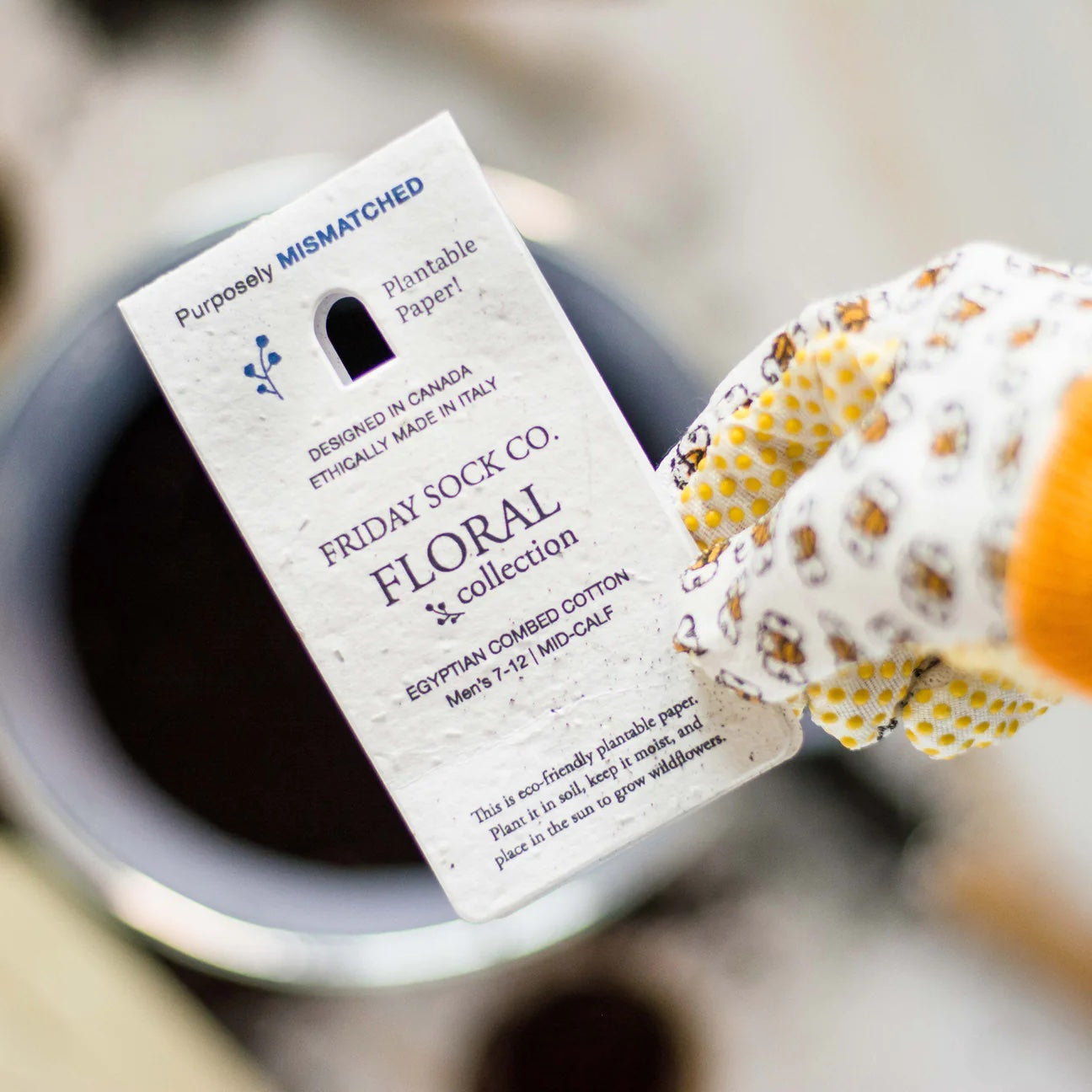 Add a burst of fun and flowers to your step with these mismatched socks from Friday Sock Co.! Each pair comes with eco-friendly plantable hang tags—simply plant the tag in soil, water it regularly, and watch wildflowers bloom. Perfect for brightening your day and the planet, these socks bring playful style and a touch of nature wherever you go.